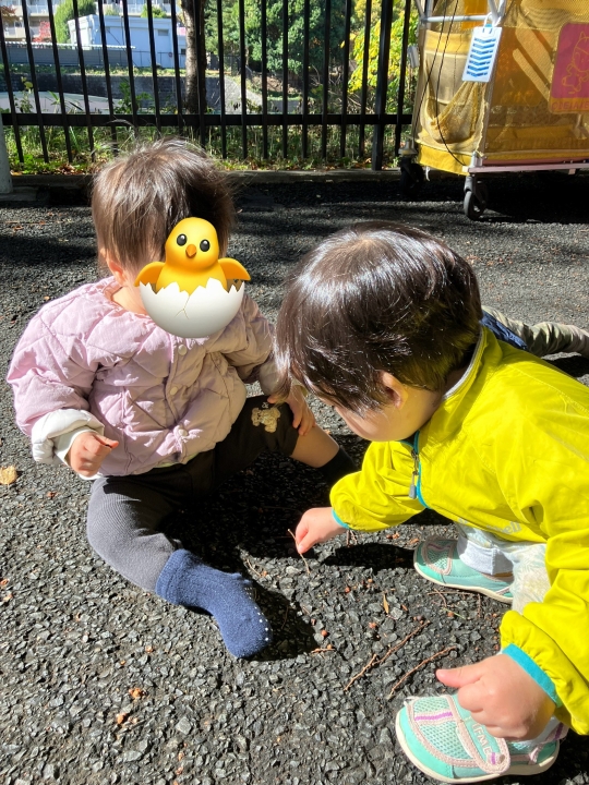 日々戸外で過ごす中で様々なものに手を伸ばし、じっくりと観察や発見をしていく子ども達です。